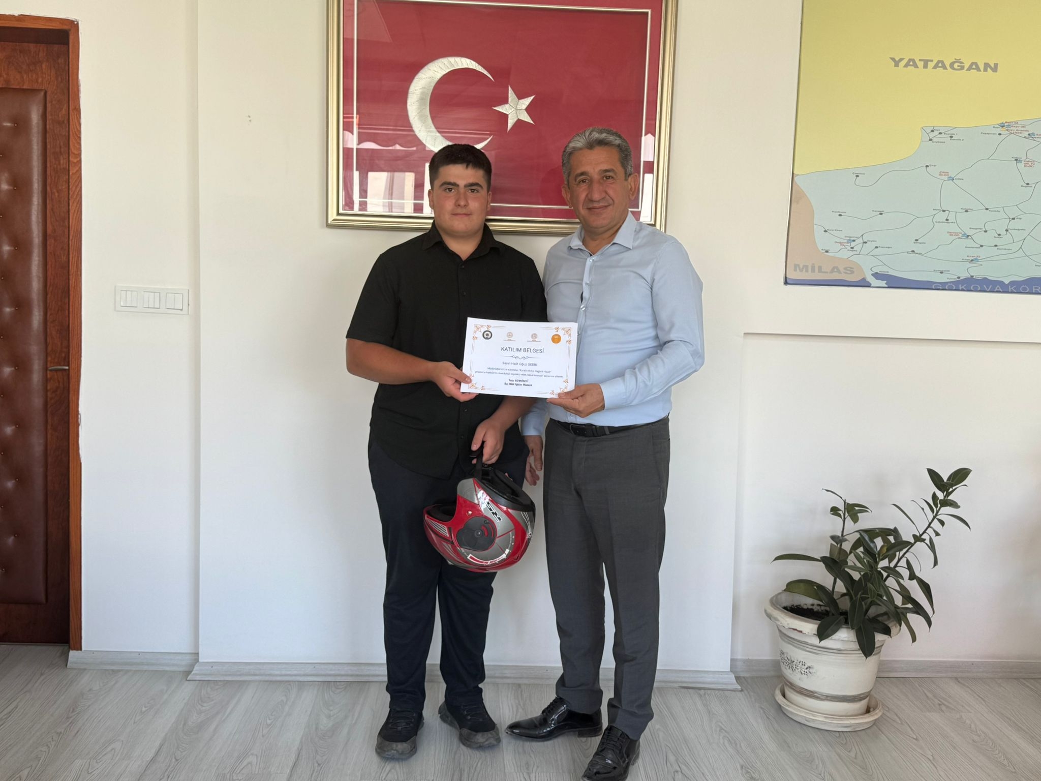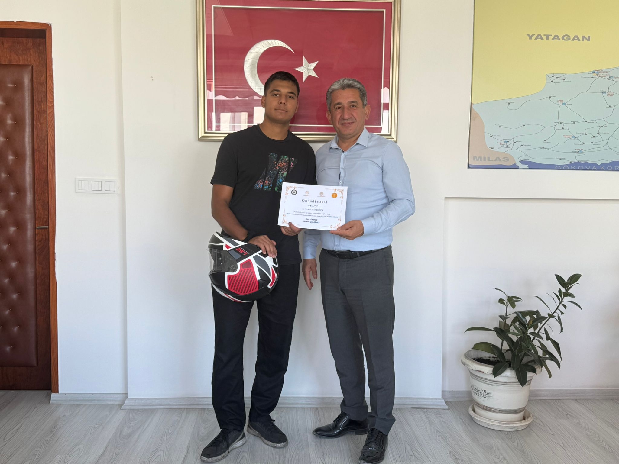 Belge takdim töreni, Menteşe İlçe Milli Eğitim Müdürü Sn. İdris Kömürcü'nün katılımıyla gerçekleştirildi. Müdür, projeye katılan öğrencileri tek tek tebrik ederek başarı belgelerini sundu. Törende konuşan Sn. İdris Kömürcü, öğrencilerin trafik güvenliği ve özellikle motosiklet kullanımında kask takma bilinci kazanmasının önemine değinirek, "Bu projeyle gençlerimizi hem bilinçlendirmeyi hem de trafik güvenliğine katkı sağlamayı amaçladık. Katılım gösteren tüm öğrencilerimizi kutluyorum." ifadelerini kullandı.